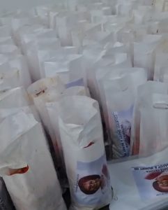 Rather than the usual non-perishables, Toyin shared bags of pepper to guests.