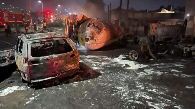 “The vehicle’s registration number and make are still unknown. However, a total of four buildings, 15 burnt vehicles, including tricycles, an unspecified number of shops, and household properties were lost in the inferno.