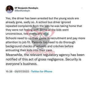PremiumTimes gathered that the incident happened on Friday when the driver of the unnamed school bus, Odunsa Mandala, was taking the pupils back to their homes after the close of school.