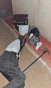 The criminals were said to have broken into the woman’s house last Thursday April 14, and stole a plasma television, a microwave, shoes, and many other things out of the house. But on getting to the door that leads out of the compound, they mysteriously dozed off.