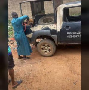 A post on Instagram made by Instablog9ja showed when men of the Ondo State Police Command arrested the dog at a hostel where the incident occurred.