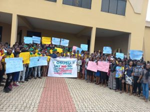 The executives of the student union of Osun State University (UNIOSUN) led by the President, Olanrewaju Muideen, on Tuesday held a campaign against drug abuse, sexual harassment, exam malpractices and cultism in the state, AMILOADED reports.