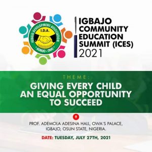 The Summit with the theme, “Given every child equal opportunity to succeed”, will be hosted under the umbrella of Igbajo Development Association (IDA).