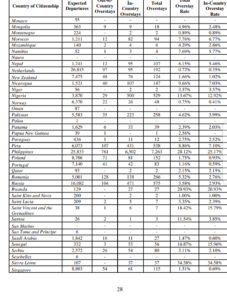 Nigeria had Total Overstay Rate of 13.43%, and Suspected in-Country Overstay Rate of 11.12%.