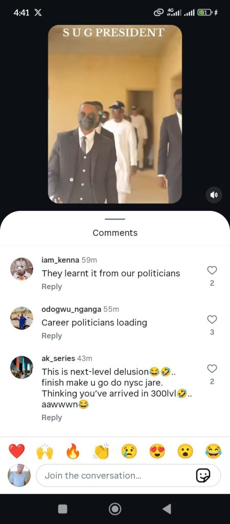 A video of the Student Union Government (SUG) President of the Federal University Dutse has sparked backlash.