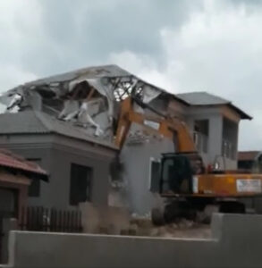 Sharing the video of the house being demolished, @THAB4NG stated the woman broke up with the businessman and the latter decided to destroy the property he built for her.