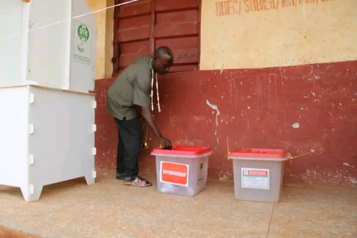 Photos captured by photojournalist Elliot Ovadje show the voter walking confidently toward the polling station, his religious symbols raised high — a scene many described as both humorous and inspiring.