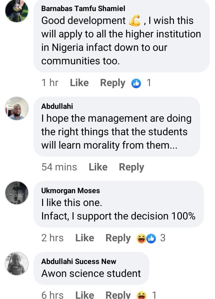 The institution announced the ban in an internal memorandum released by its Directorate of Student Affairs and signed by the Deputy Registrar (SA), Gboyega Odejobi, on Thursday.