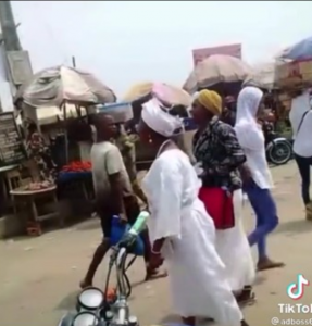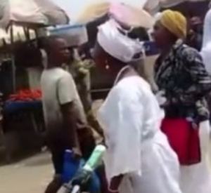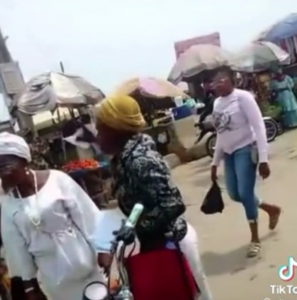 Video of a Christian lady is trending on Tiktok, as she try to cast and bind a traditionalist, she saw on a busy street, as per casting out evil or devil.