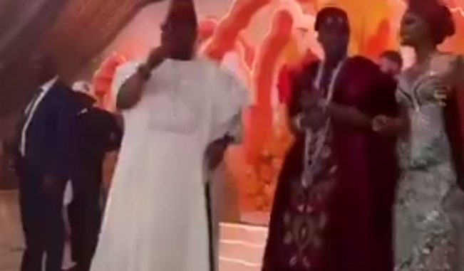 Videos circulating on social media show Adeleke singing on the stage for the couple who danced along.