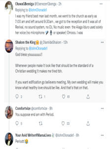 While some Nigerians loved the idea of having a prayer session at their wedding reception, others disagreed and warned that no one should try such with them.