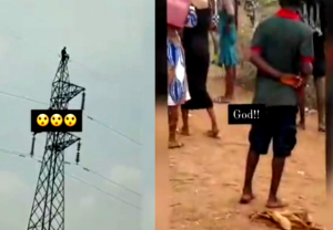 Residents of Depor pipeline in Benin city, Edo state, took to the streets on Sunday morning , February 20, to watch a suspected ”witch” that landed on a high tension cable.