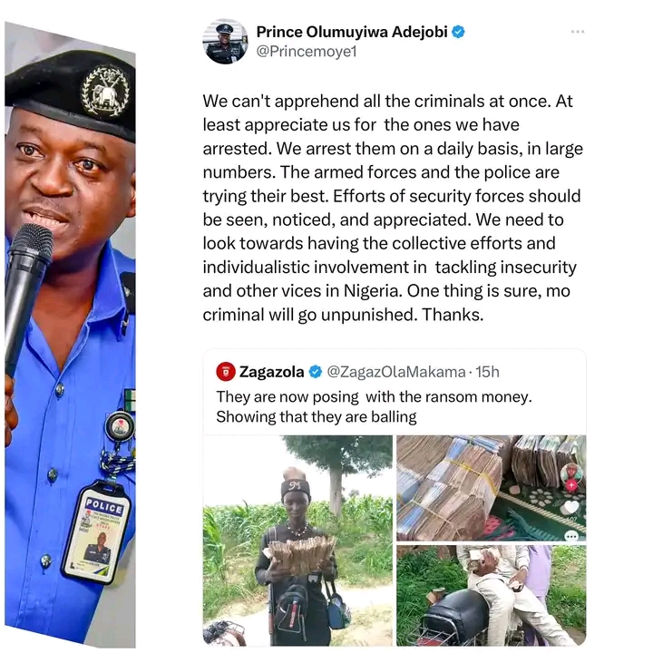 Reacting to the trending photos of bandits displaying the ransom money they collected from their victims, Adejobi urged the public to appreciate the arrests made by the police.