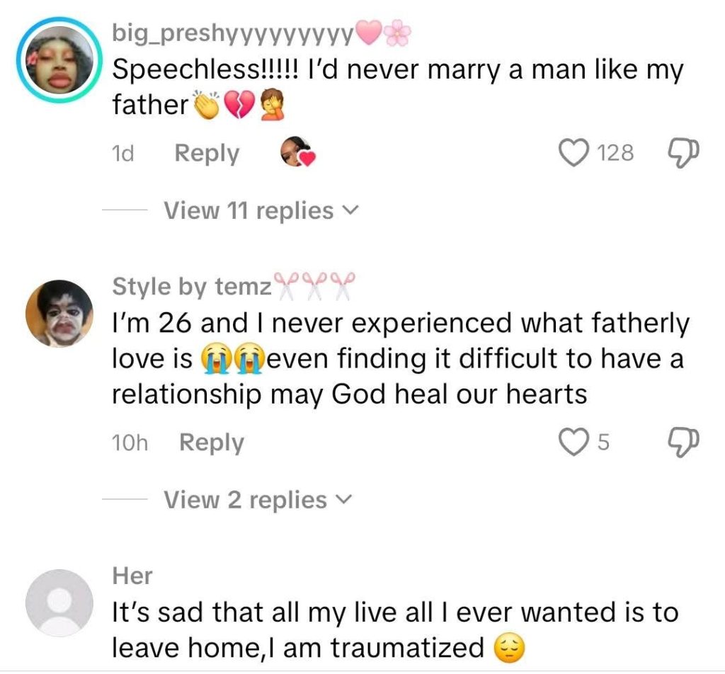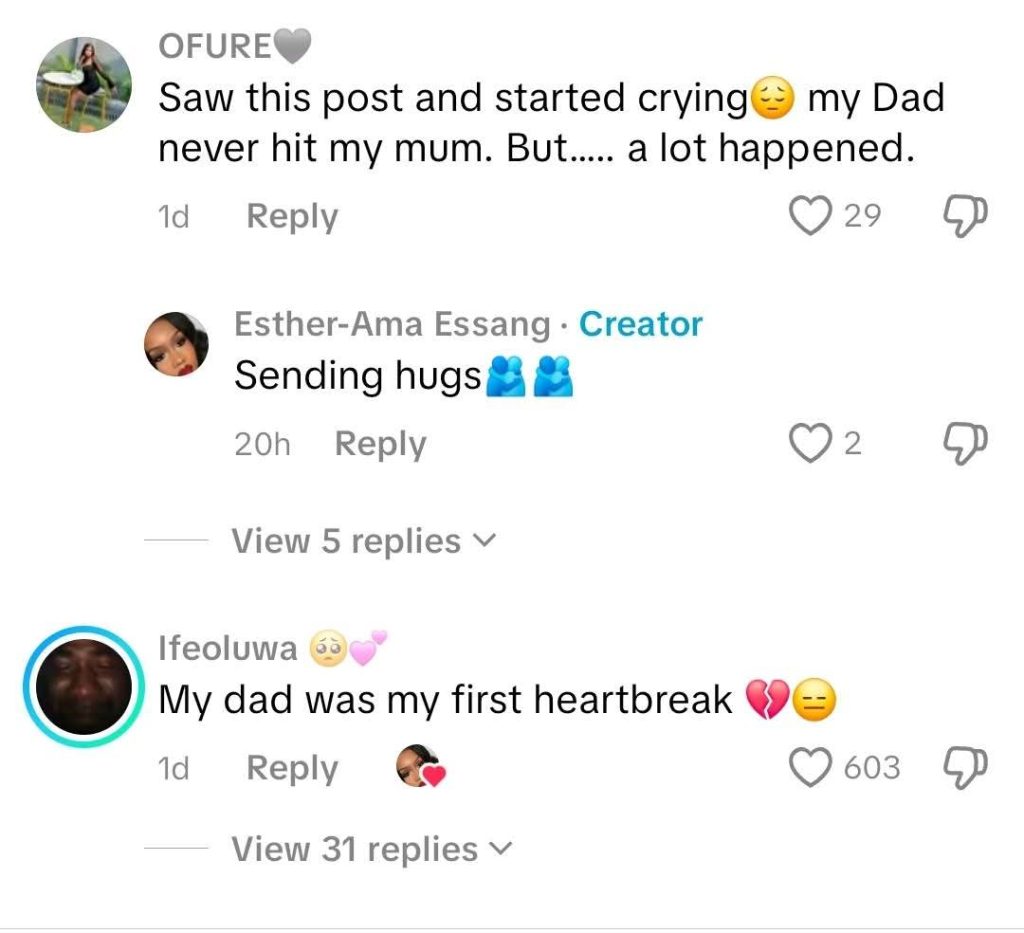 And some pointed out that they grew up in peaceful homes and are grateful to their fathers for making it so.