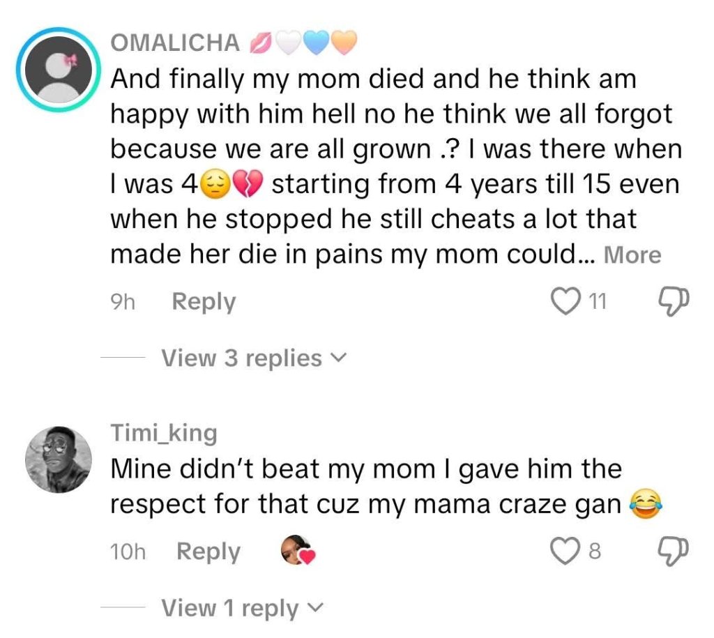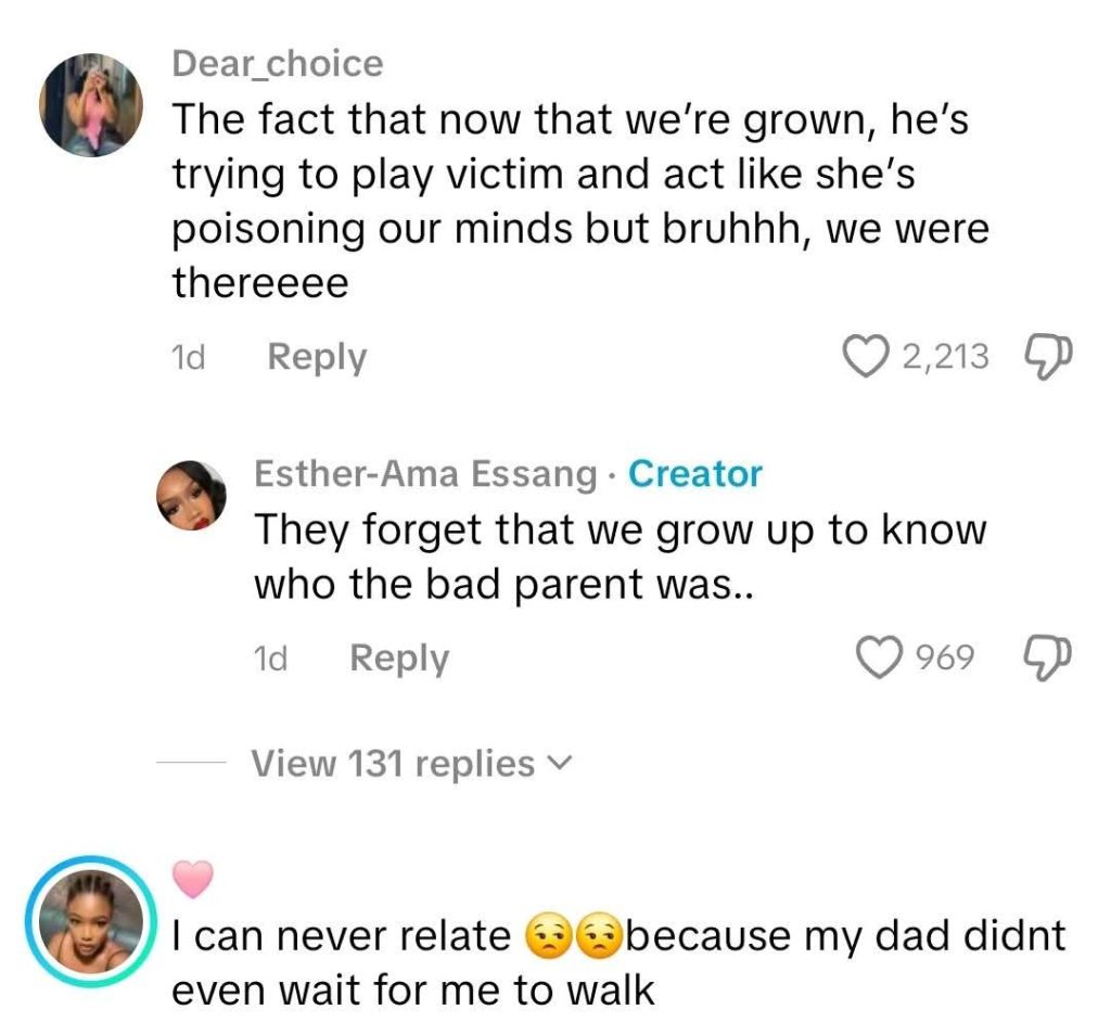 Others said their mothers did not need to poison their minds about their fathers because they were in the abusive homes and witnessed the actions of their fathers.