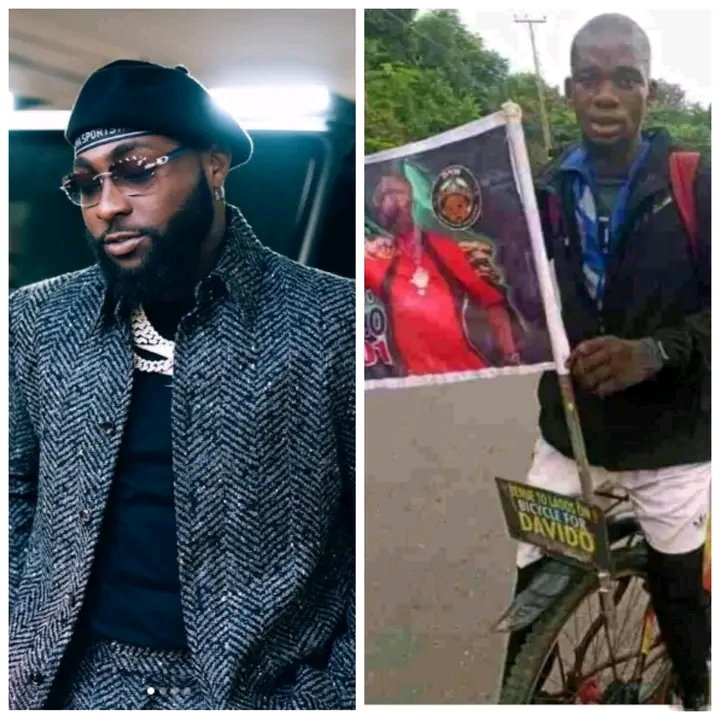 Davido had on Thursday asked a die-hard fan of his who is said to be on a Benue to Lagos trip on a bicycle to turn around because he (Davido) is currently not around.
