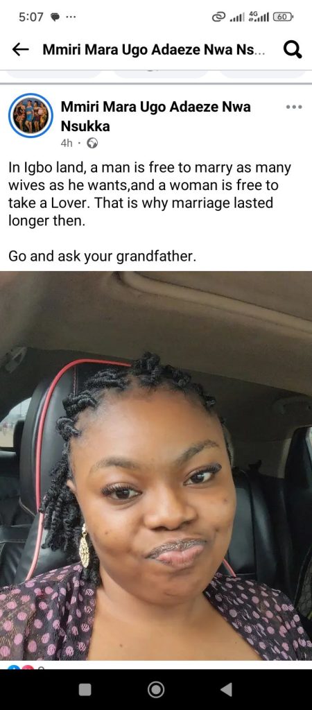 Mmiri Mara Ugo further noted that in Igbo land, men are free to marry as many wives as they wish, while women are equally free to bear children for their husbands without interference.