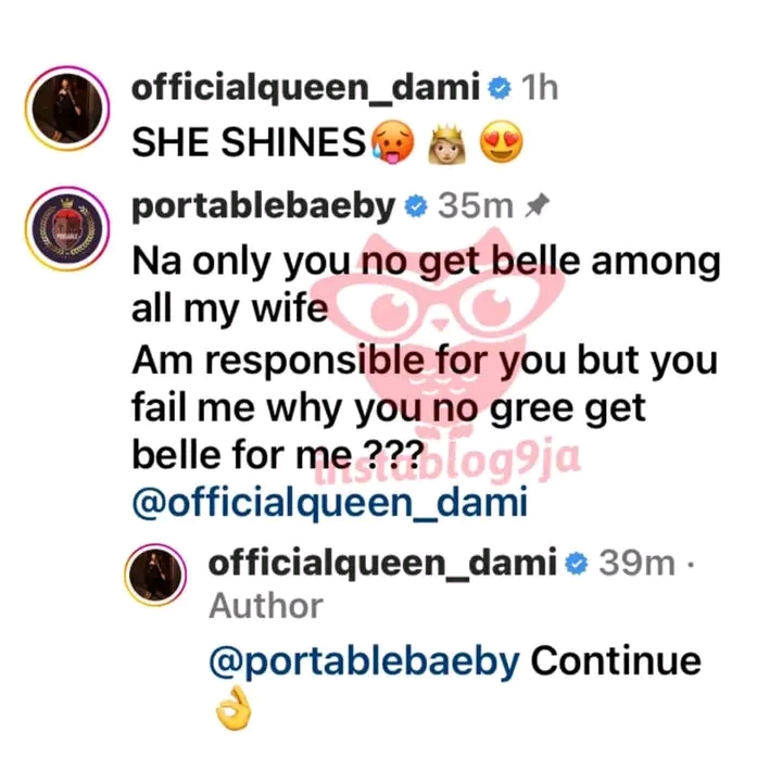 The musician responded to a remark from Queen Dami on a post, wondering why she is the only one of his wives who refuses to get pregnant despite being responsible for all her needs.