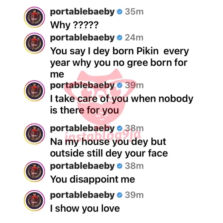 Portable, a controversial musician, confronts his girlfriend, Queen Dami, the late Alaafin of Oyo’s wife, over her unwillingness to have his baby amid all of his wives.