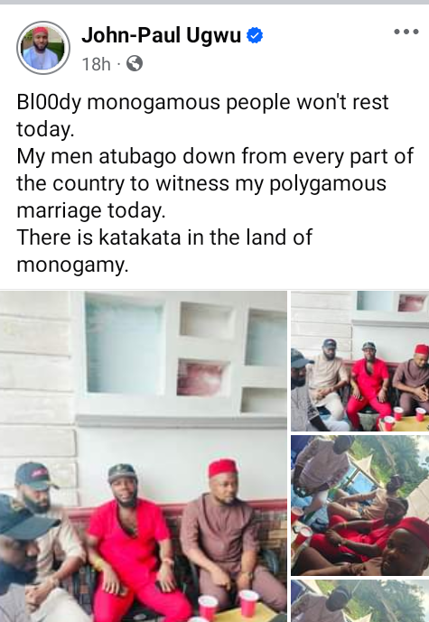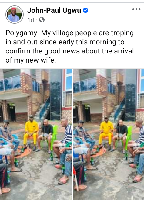 A self-proclaimed Nigerian polygamist, John-Paul Ugwu, has claimed that he took a new wife.