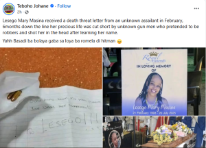 The sad incident happened on Sunday, July 20, 2025 at Boikhutsong, Phase 8 in Mabopane, Tshwane, few months after she received a threat letter, warning her to stay away from a certain man.