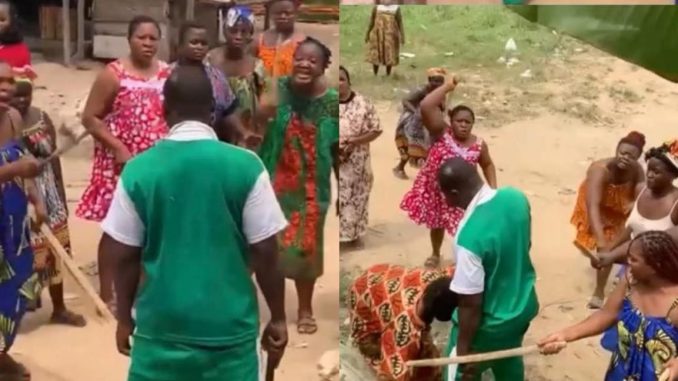 A man was flogged mercilessly by women in his community for being abusive towards his wife.
