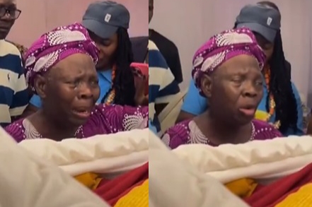 A video of an elderly Nigerian woman paying glowing tribute to her late husband at his lying-in-state ceremony, has made the rounds on social media.
