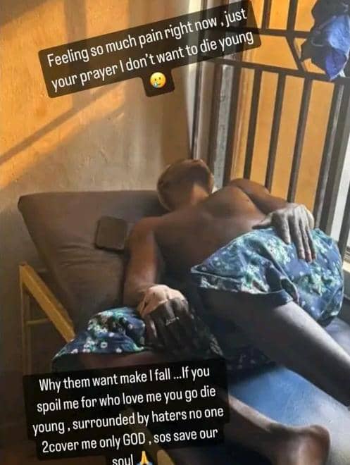 Speaking in pidgin English, he said; “Feeling so much pain right now, just your prayer I don’t want to die young.